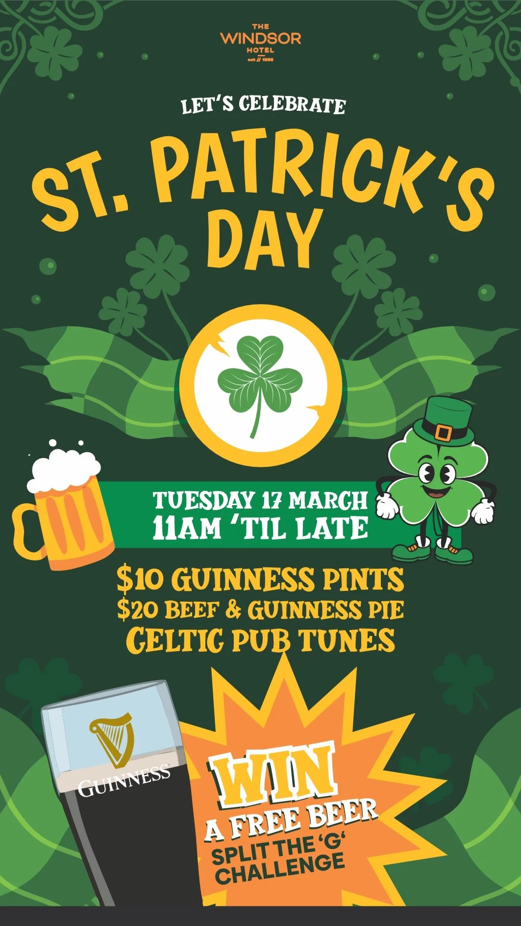 St Patrick's Day Tuesday, March 17, 2026 11:00 AM 10:00 PM 11:00 22:00 The Windsor Hotel 112 Mill Point Road South Perth, WA, 6151 Australia (map) Google Calendar ICS